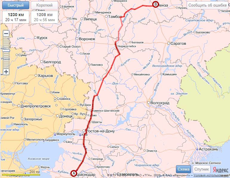 Грузоперевозки Краснодар Пенза. Расстояние 1230 км. Время в пути 20 ч 17 мин. Промежуточные крупные города - Краснодар, Ростов-на-Дону, Борисоглебск, Тамбов, Пенза