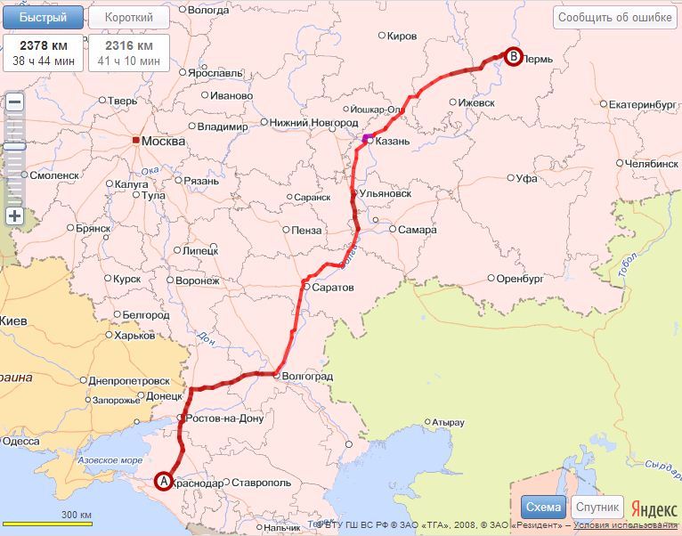 Грузоперевозки Краснодар Пермь - карта маршрута