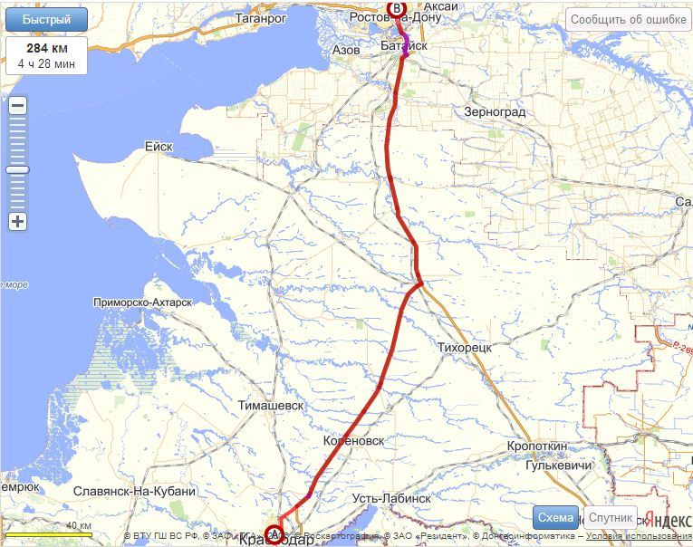 Грузоперевозки Краснодар Ростов на Дону. Расстояние 284 км. Время в пути 4 ч 28 мин. Промежуточные крупные города - Краснодар, Кореновск, Батайск, Ростов-на-Дону