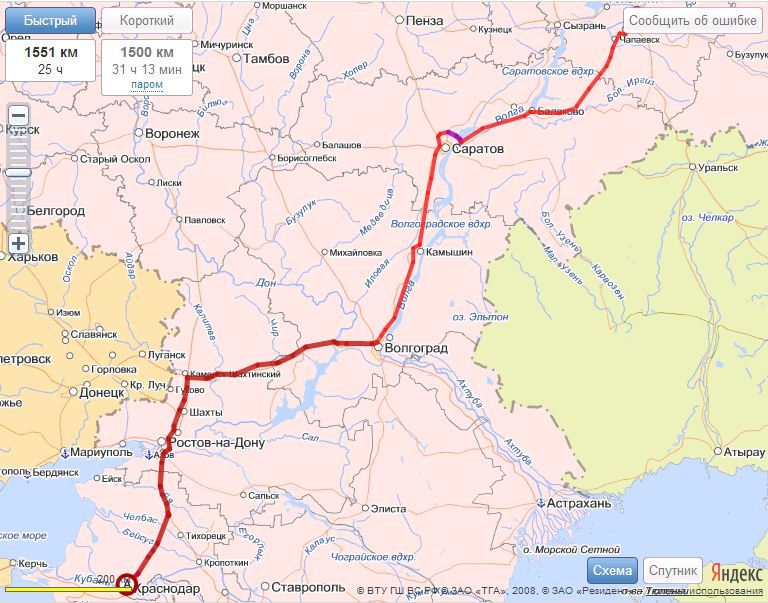 Грузоперевозки Краснодар Самара - карта маршрута