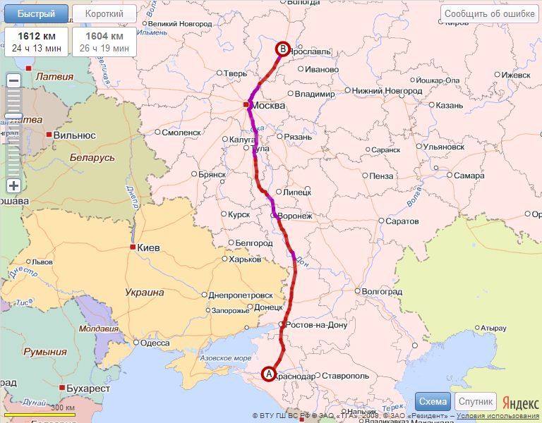 Грузоперевозки Краснодар Ярославль - карта маршрута