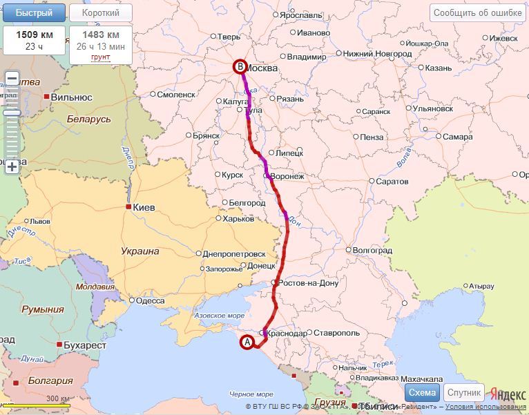 Грузоперевозки Геленджик Москва. Расстояние 1509 км. Время в пути 23 ч 00 мин. Промежуточные крупные города - Джубга, Краснодар, Ростов-на-Дону, Воронеж.